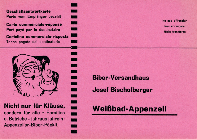 Josef Bischofberger liess Sujets von U. Martinelli, A. und J. Manser malen und auf die Verpackungen drucken. Weil Biber vor allem an Weihnachten beliebt sind, realisierten Bischofbergers für diese «Biber-Zeit» stimmungsvolle Wintersujets. Mittlerweile sind die Bilder auf den Verpackungen ein Markenzeichen unserer Bärli-Biber.
